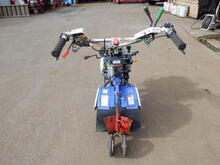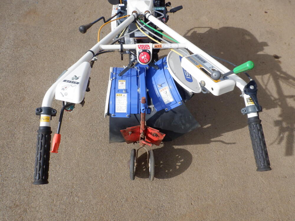 仕様 | 5.4馬力(4.0kw)ガソリンエンジン 前進4段 後進2段 正転2段 逆転1段 ハンドル上下4段階 ハンドル回動 ネギ土揚げセット |
