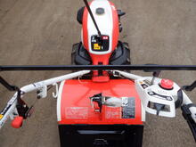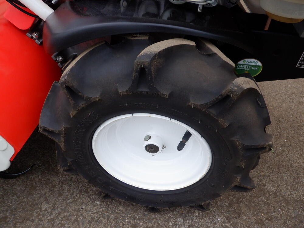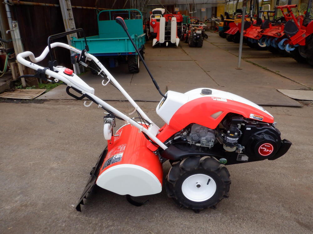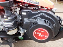 仕様 | 6.3馬力(4.6kw)ガソリンエンジン 前進2段 後進1段 作業1段 直進(作業)-旋回 (※デフロック) らくらくスタート ハンドル上下4段階 駐車ブレーキロックレバー ロープ固定用フック かんたんうね立てマット(狭-広) |