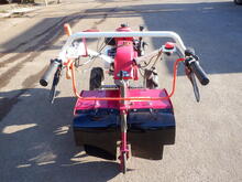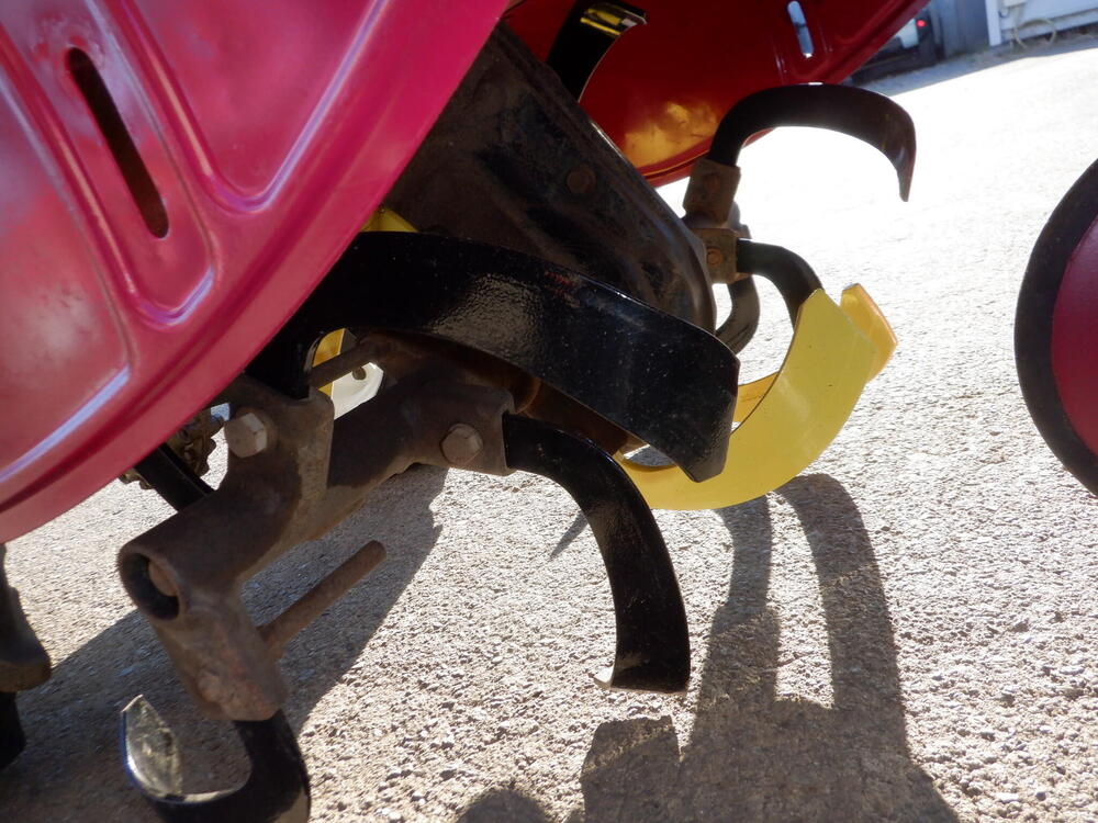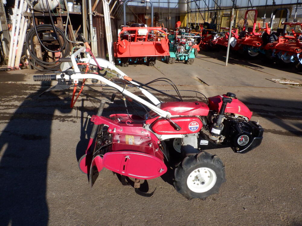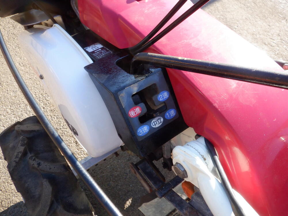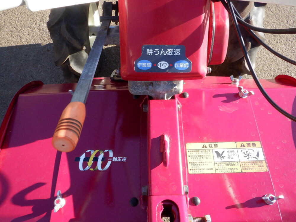 | 仕様 | 7馬力(5.1kw) ガソリンエンジン 前進3段 後進1段 作業2段(チェーンケースひっくり返して4段) 耕運幅60㎝ 一軸同時正逆転ロータリー iスタート 緊急停止レバー 大径タイヤ |