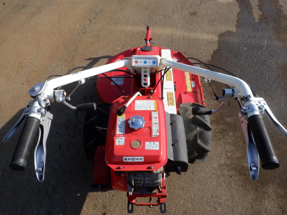 | 仕様 | 搭載エンジン クボタ GH250 ガソリン8.5馬力(6.25kw) 前進4段 後進2段 刈幅80㎝ 刈高10~80㎝ ハンドル上下左右可動 |