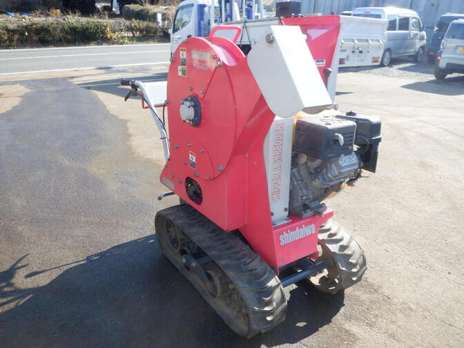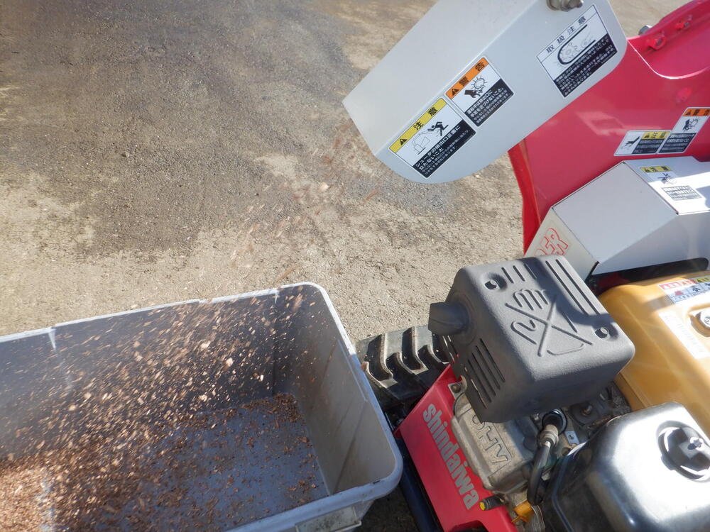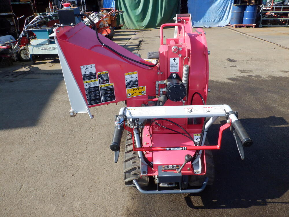 搭載エンジン スバルEH41 ガソリン13.5馬力(9.9kw) 前進2段 後進2段 送り刃(正転・逆転) 非常停止スイッチ 車体寸法:長さ1575×幅940×高さ1300(mm) 重量:300㎏ 最大処理径:117mm 粉砕方式:チッパー刃2枚 粉砕対象物:木・枝・竹など |