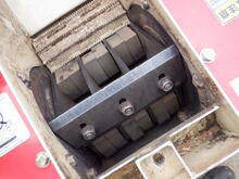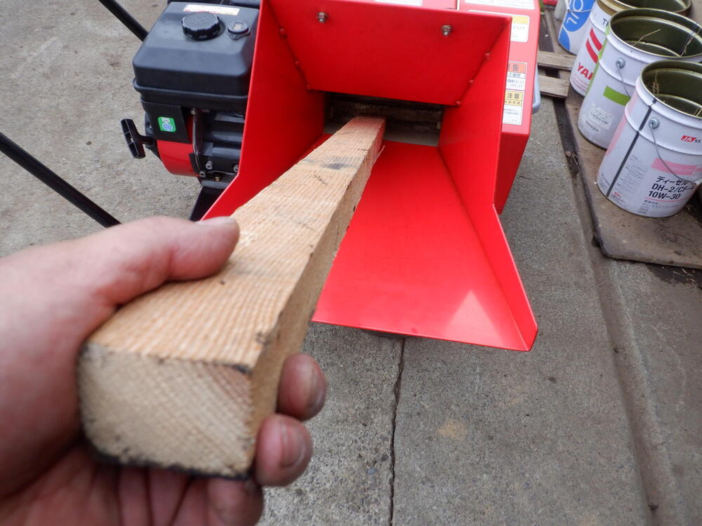 仕様 | 搭載エンジン 三菱GB180 ガソリンエンジン 手押し式 長さ1.2×幅0.72×高さ0.8(m) 重量110㎏ フリースイングハンマー+ナイフ式 最大粉砕径 軟質材60mm 硬質材45mm 粉砕対象物:木・枝・竹など 自動調速式食い込みローラー |