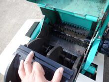 仕様 | 搭載エンジン 三菱GM301P ガソリン10馬力 前進1段 後進1段 チッパー刃+フリーハンマー 最大粉砕径:100mm 粉砕対象物:木・枝・竹など 自動送り負荷制御装置 送り:正転-逆転 送り停止スイッチ 重量:270㎏ |