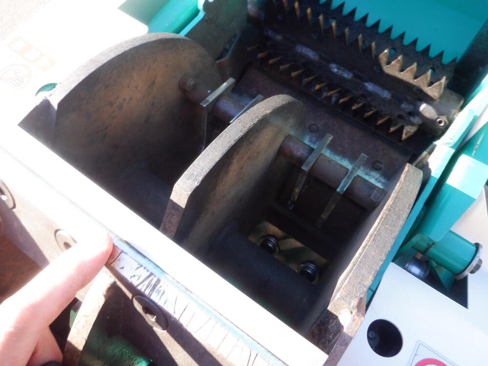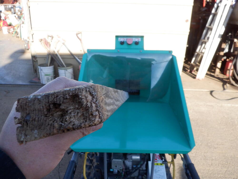 | 仕様 | 搭載エンジン スバルEX40プレミアム ガソリン14馬力 セル付き 重量345㎏ 前進2段 後進1段 チッパーナイフ+フリーハンマー式 処理可能径:最大125㎜ 処理対象物:木・枝・竹など 自動負荷制御装置 送り(正転-逆転) モード(小枝-標準) 正送り非常停止ボタン アワーメーター 457時間 |