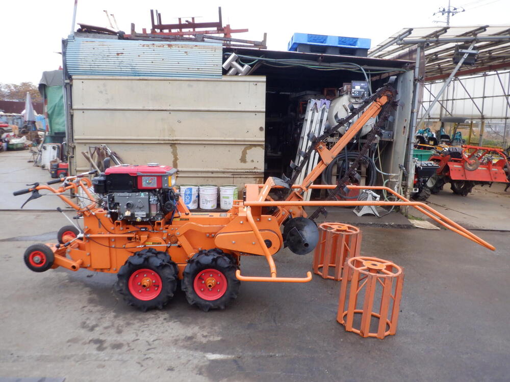 | 仕様 | 自走式トレンチャー 搭載エンジン ヤンマー TF70V-LE 水冷ディーゼル7.5馬力 セル付き 溝幅20㎝ 堀深さ1m 前-中-後 作業-中立-路上 油圧式ブーム 傾斜調節装置 ダブルタイヤ 前進後尾輪 かご車輪(ごぼう用) |